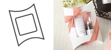 枕型の形状をした曲面のギフト箱で畳まれた状態でのお届けとなります。簡単に組み立て可能でラッピング用にピッタリの箱です。