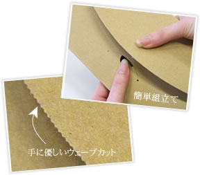 開封しやすいミシン目を付けたタイプになっているため、クラフトテープを剥がすことなく開封できます。 組み立て時に手を傷つけない端がギザギザ状のウェーブカットになっています。