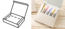 フタと底が一体になったギフトボックス で平板状から組立てて箱にします。